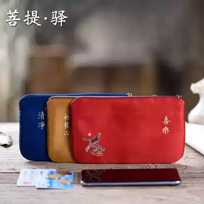 Happy) clean) dust-free Chinese Zen bag mobile phone bag coin wallet Chinese style hand bag embroidered wallet