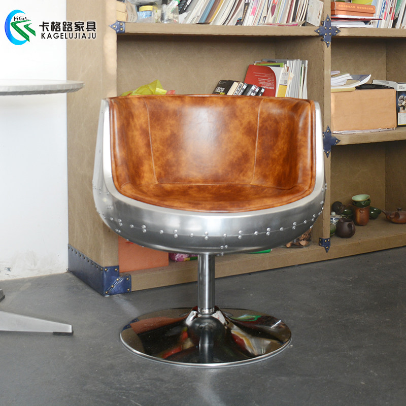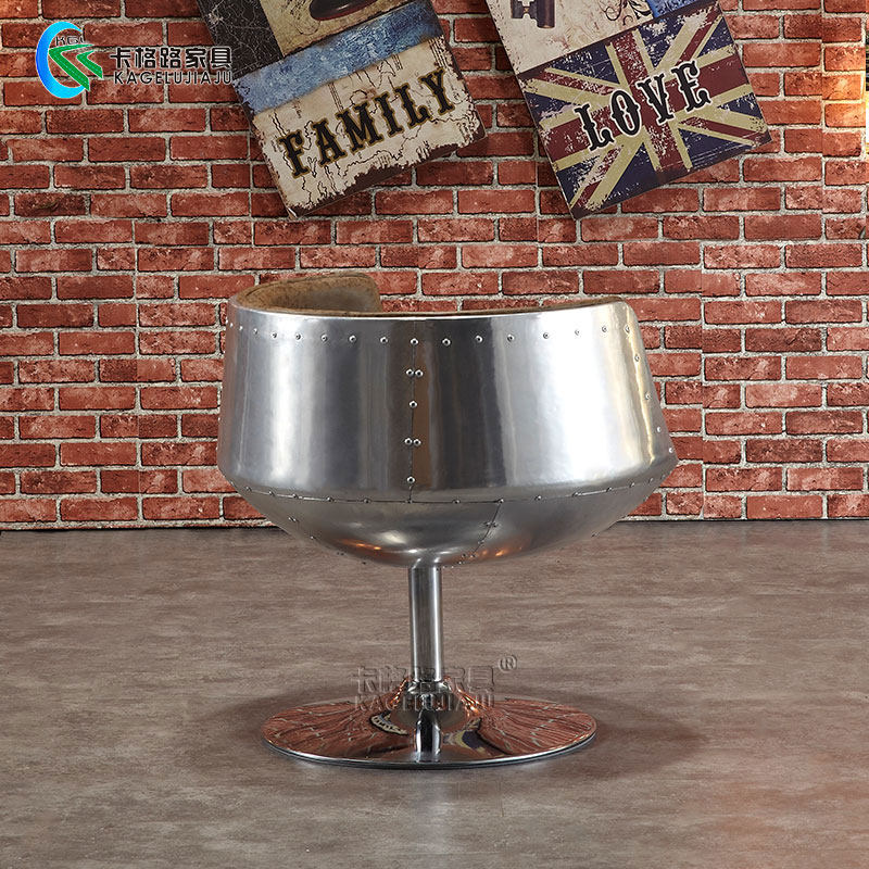 Single sofa chair industrial wind chair personality fashion swivel chair metal aluminum leather rivet wine glass chair swivel bar chair