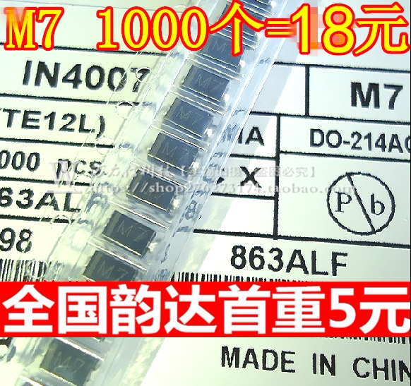 M7 4*2 5MM rectifier diode 1A1000V SMA patch 1N4007 IN4007 1K=16 yuan