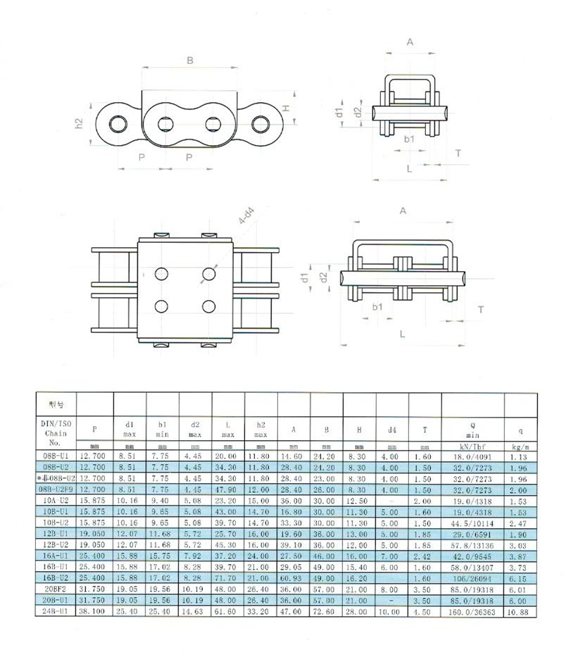 Industrial transmission conveyor U-type cover chain 08A08B10A10B12A12B16A16B-U1 U2 cover chain