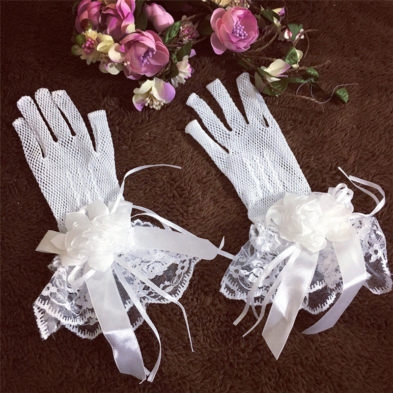 Korean Bridal White Gloves Wedding Wedding Dress Gown Short lace flower with finger wedding bracelet Skirt Brace Accessories
