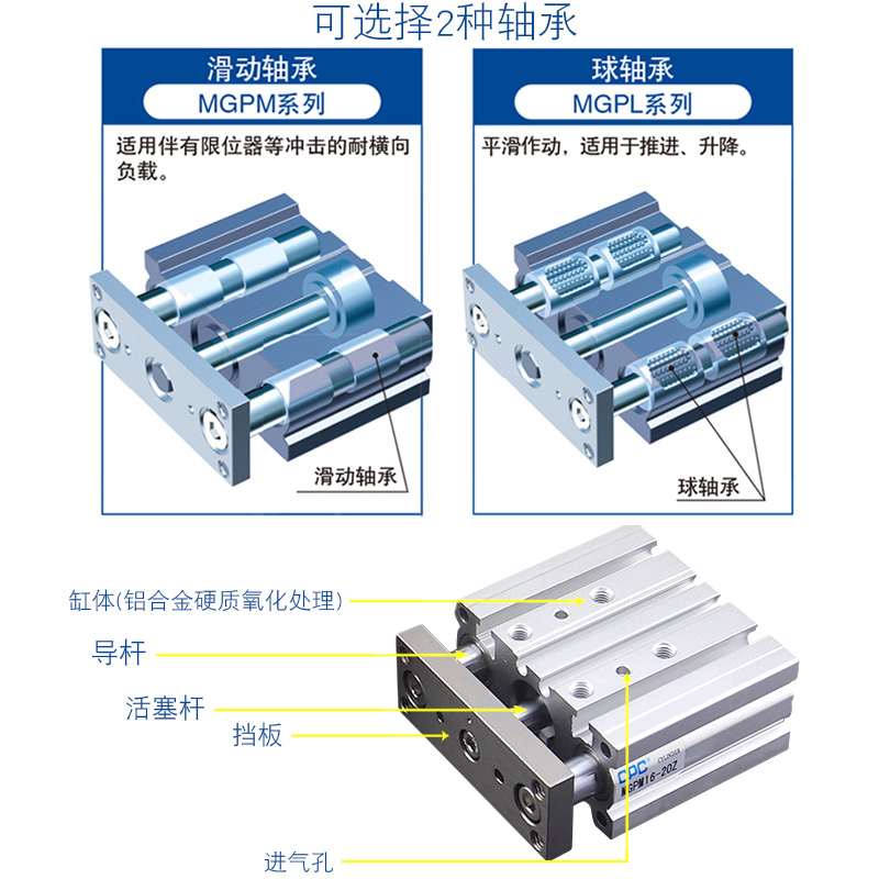 SMC-type CPC triaxial cylinder MGPM16-10-15 -20-25-30-50-75-100-200Z with guide lever