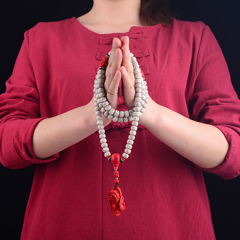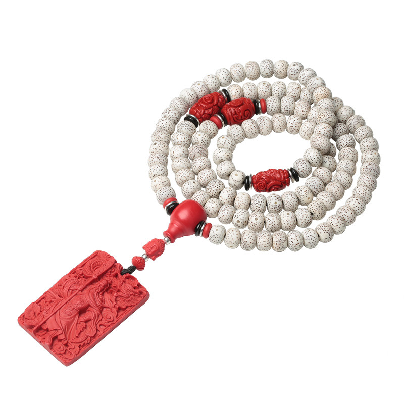Good brocade Star Moon Bodhi 108 Buddha beads Vermilion red Guan Gong Guanyin hand chain necklace Men's and women's long version sweater chain