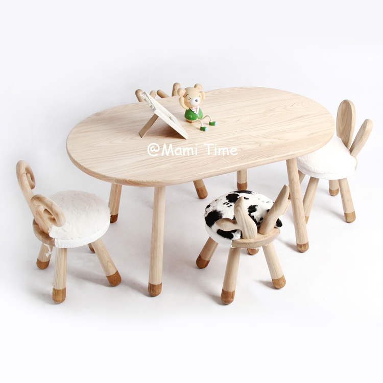 Nordic Wind InS Solid Wood Children Table Chairs Kindergarten Backrest Small Stools Creative Cartoon Short Bench Brief small bench