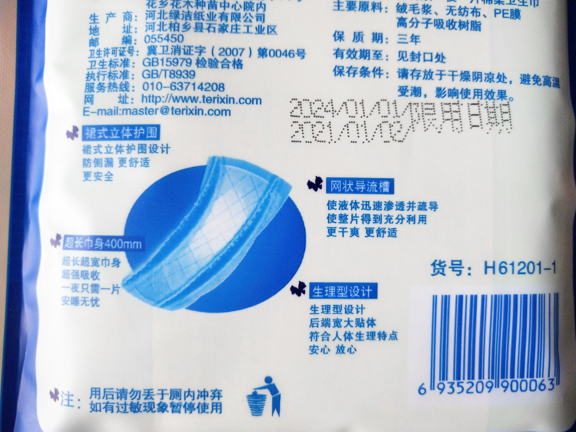 Tezhin overnight an ultra-long night with 400mm stereoscopic protection of sanitary cotton 1 piece of clothing