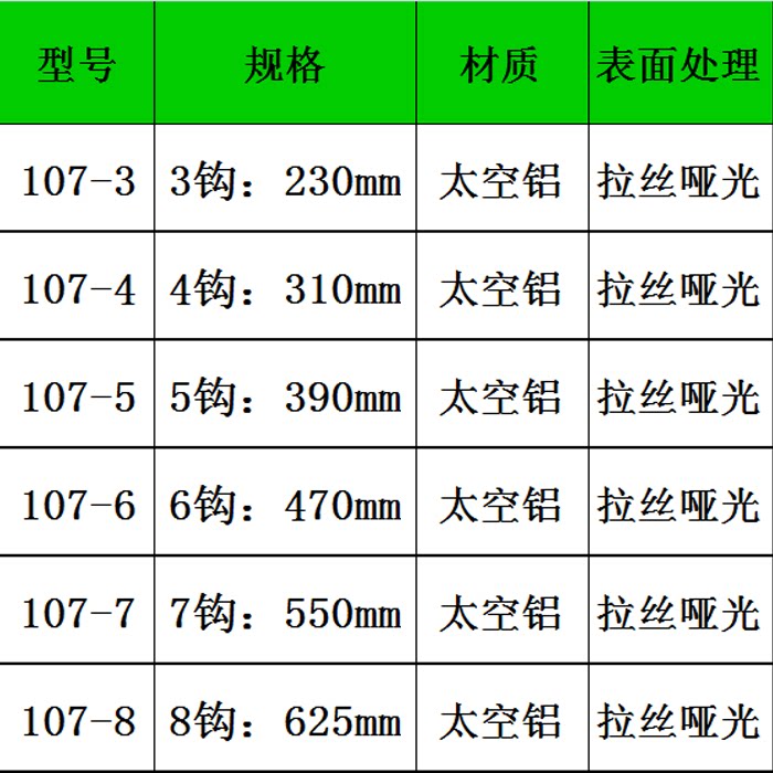 3 hooks (23cm) 4 hooks (31cm) 5 hooks (39cm) 6 hooks (47cm) 7 hooks (55cm) 8 hooks (625cm)