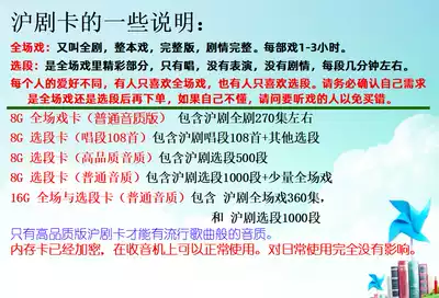 Radio 8g full-time play card (regular version) radio 16g full-play card (regular version) radio 8G Shanghai opera chant paragraph 108 first card radio 8G optional card (high quality version