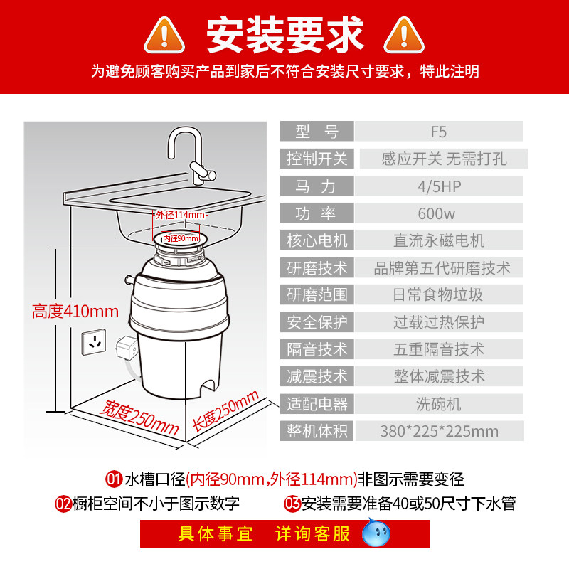 Baker Bass F5 food waste processor Household kitchen food waste grinder shredder cleaner Fully automatic