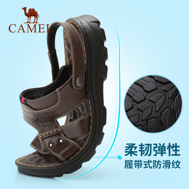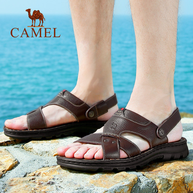 Camel men's shoes 2022 Summer new soft-bottom genuine leather beach shoes casual light sandals Two wearing sandals men
