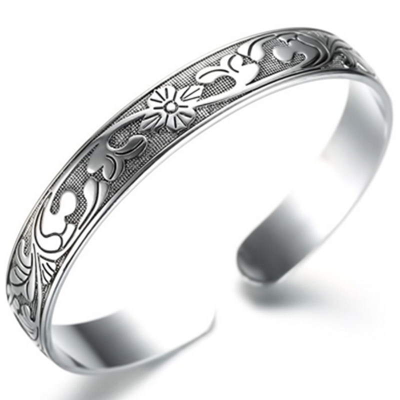 Classic style retro fashion Miao silver bracelet female national wind lotus leaf patterned hand ring retro bracelet ornament