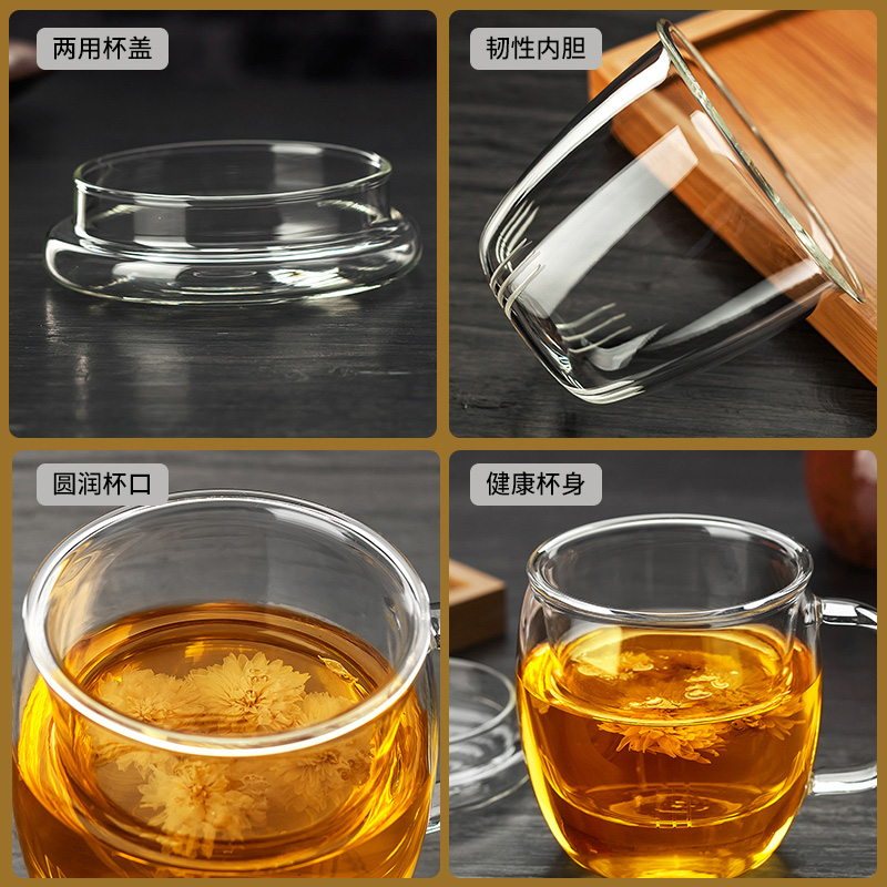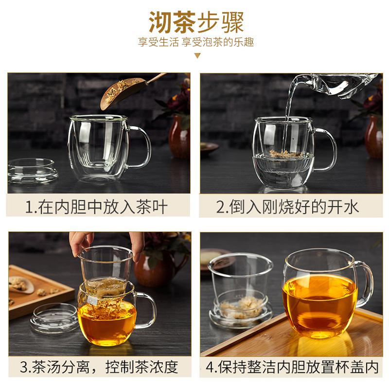 Tea cup Glass filter bubble tea cup Household with lid with tea water separation Men's and women's office transparent water cup