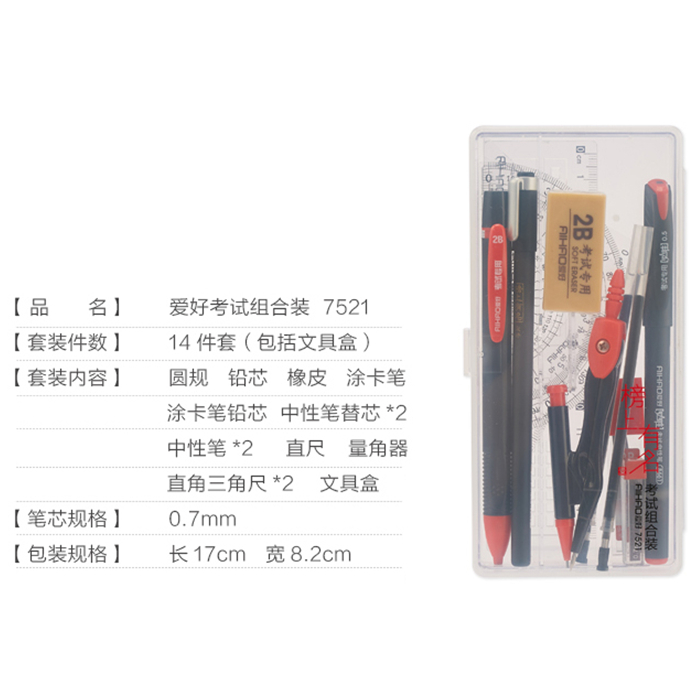 Hobby stationery 7521 list of famous Chinese gaokao students coated with pen compasses ruler exam special combined suit