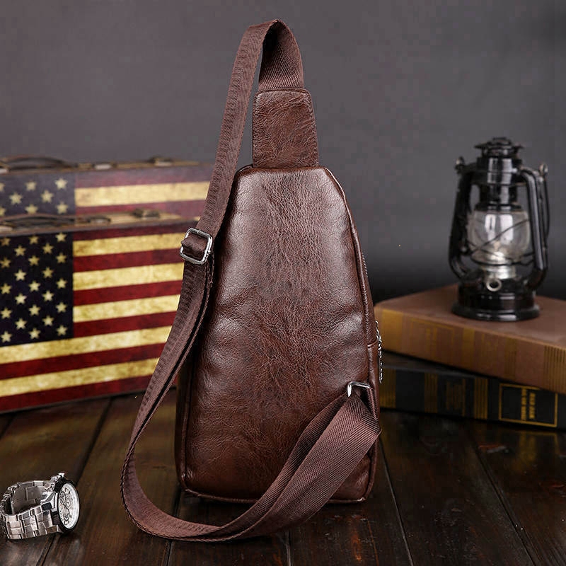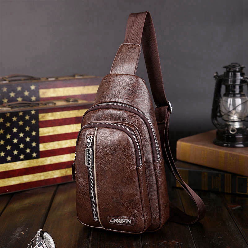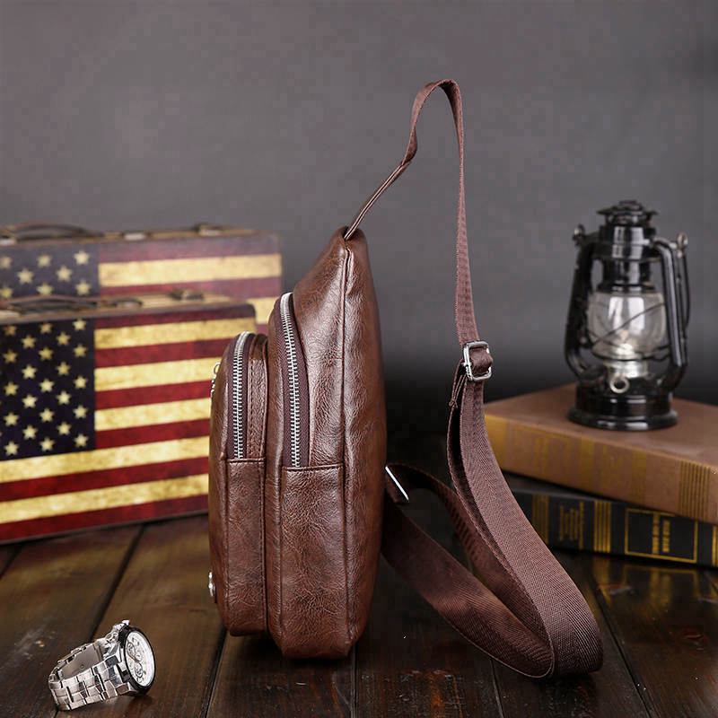 pu leather chest bag male 2017 new tide pack Korean version single shoulder bag slanted satchel 100 hitch casual personality men's small shoulder bag