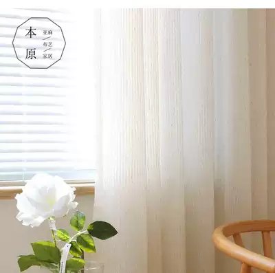 Plain linen cotton and linen yarn curtain soft sense American country pure color striped bedroom simple curtain curtain finished custom