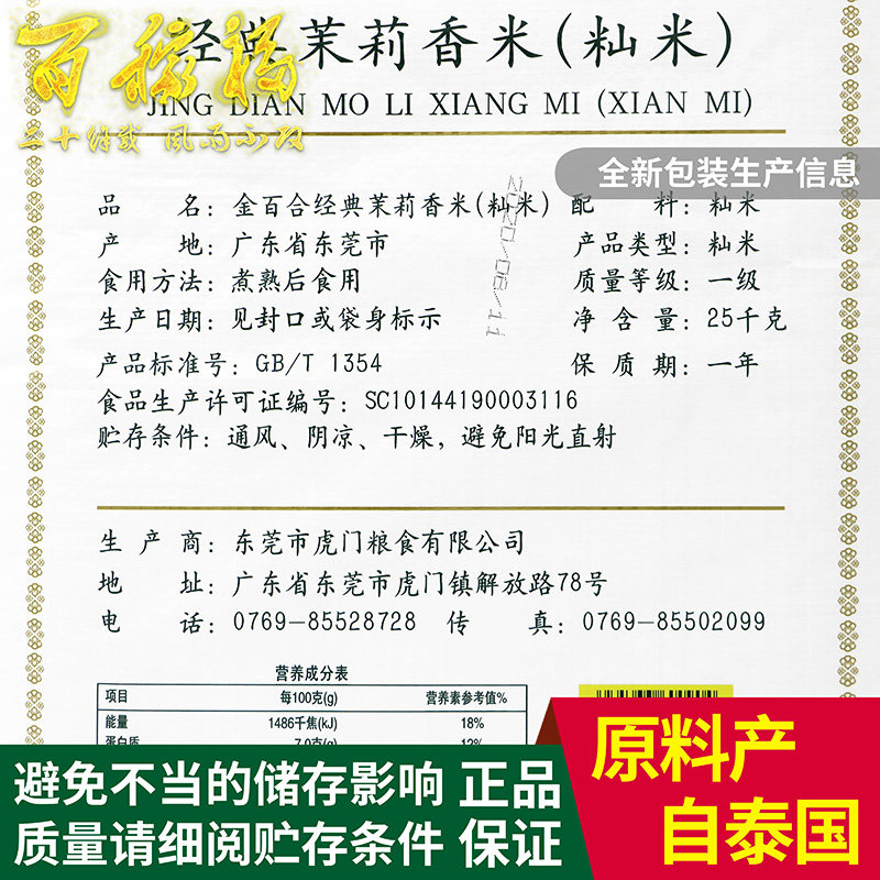 Golden Lily Thai Jasmine rice 25KG Thailand imported 2020 new rice long grain fragrant rice Guangdong