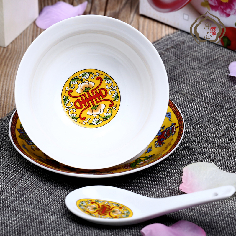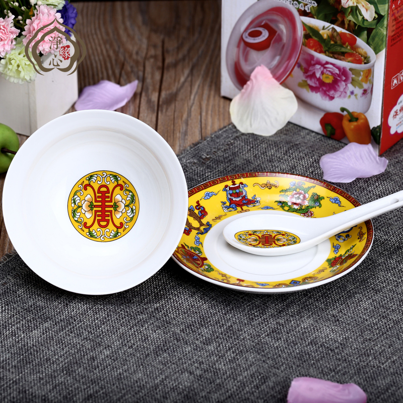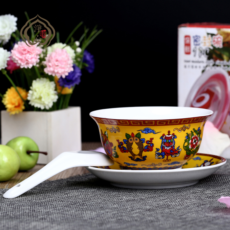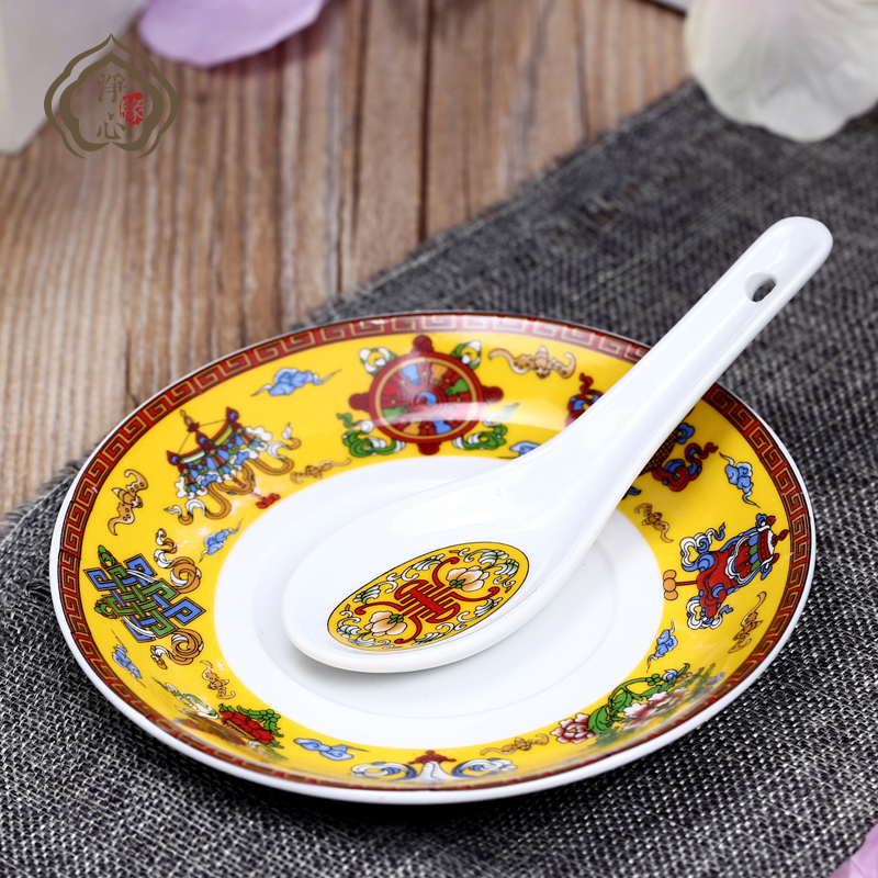 Collection of Tibetan Concealed Supplies Eight Auspicious Bowls of Dish Spoon Ceramic Bowl Three Sets Edible Bowl dishes