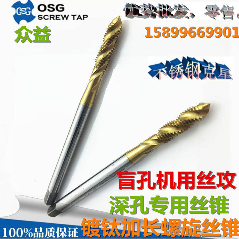 Import OSG US-made lengthened titanium plated spiral screw tap deep hole special screw tapping 2-56 6-328-32 lengthened 100