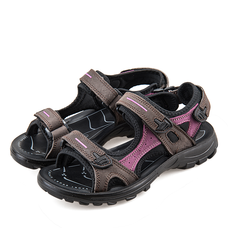 Top layer cowhide beach shoes women seaside sports outdoor sandals women leather large size junior high school students flat bottom summer