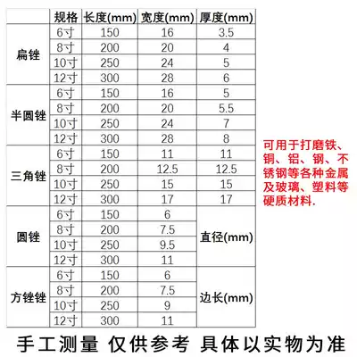 Red milky white white beige light gray 6 inch three-piece set 8 inch three-piece set 10 inch three-piece set 12 inch three-piece set 6 inch (150mm)medium tooth flat file 6 inch (150mm)medium tooth half
