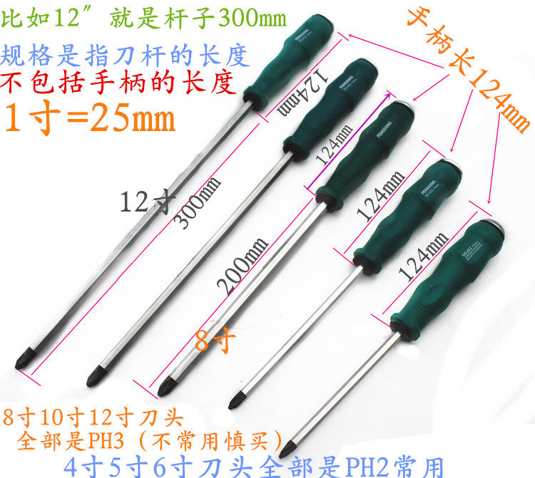 4-inch flat-blade screwdriver (6*100mm) 4-inch Phillips screwdriver PH2 (6*100mm) 5-inch flat-blade screwdriver (6*125mm) 5-inch Phillips screwdriver PH