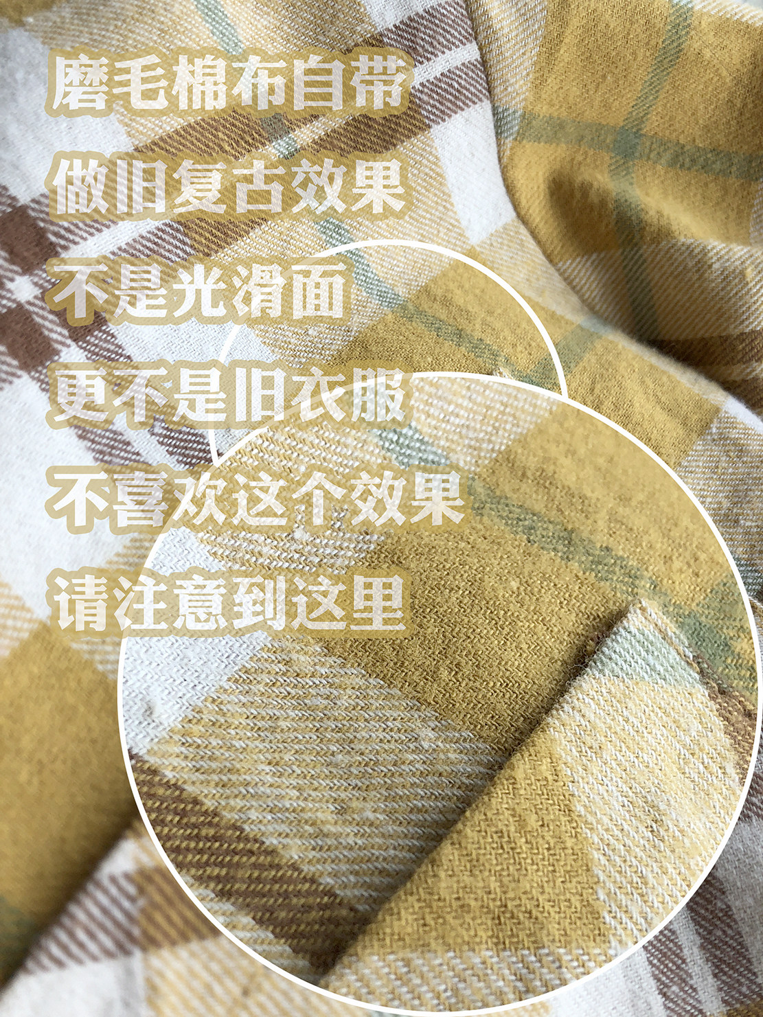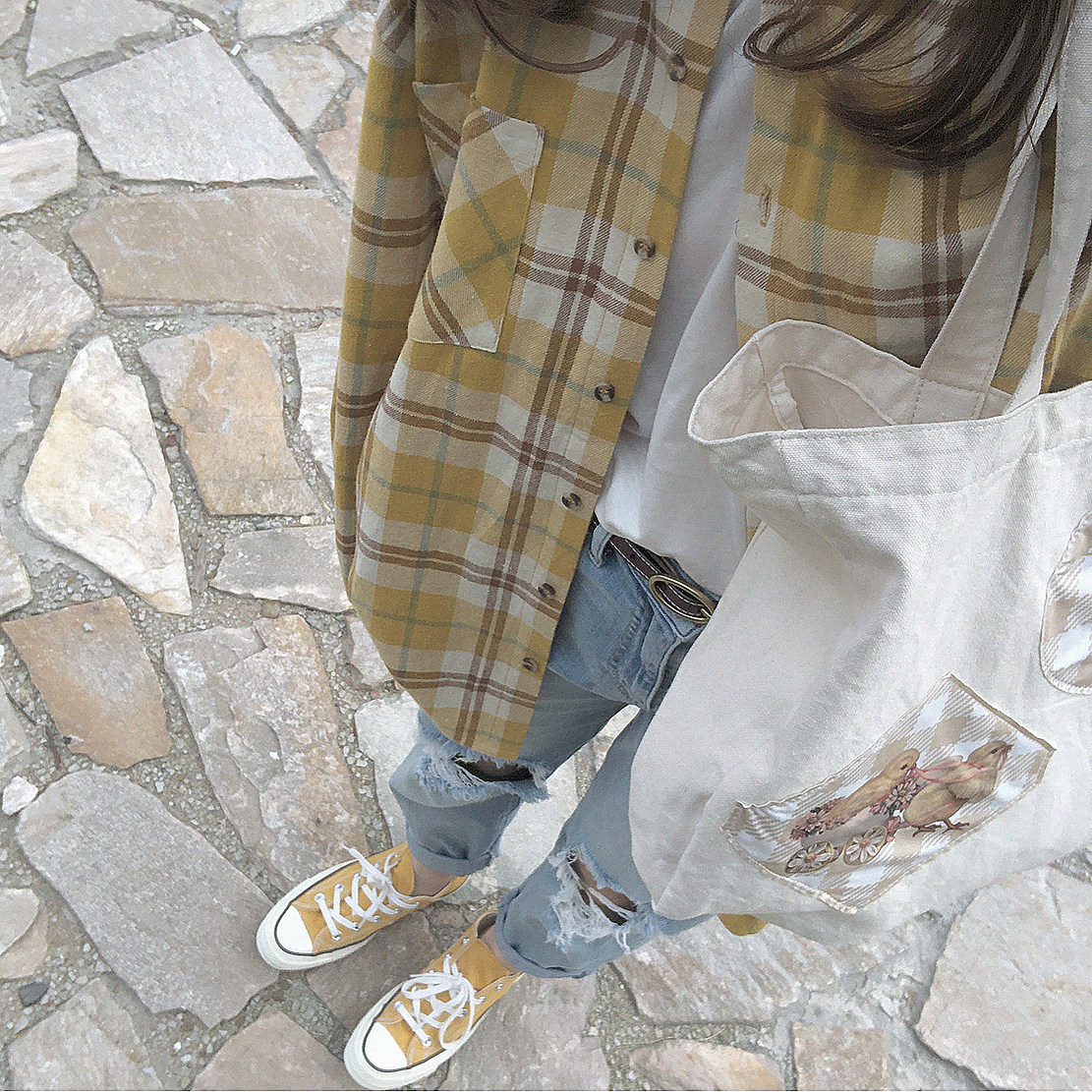 Vintage old brushed yellow and white casual wild loose plaid shirt W