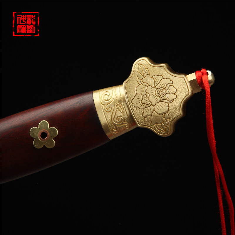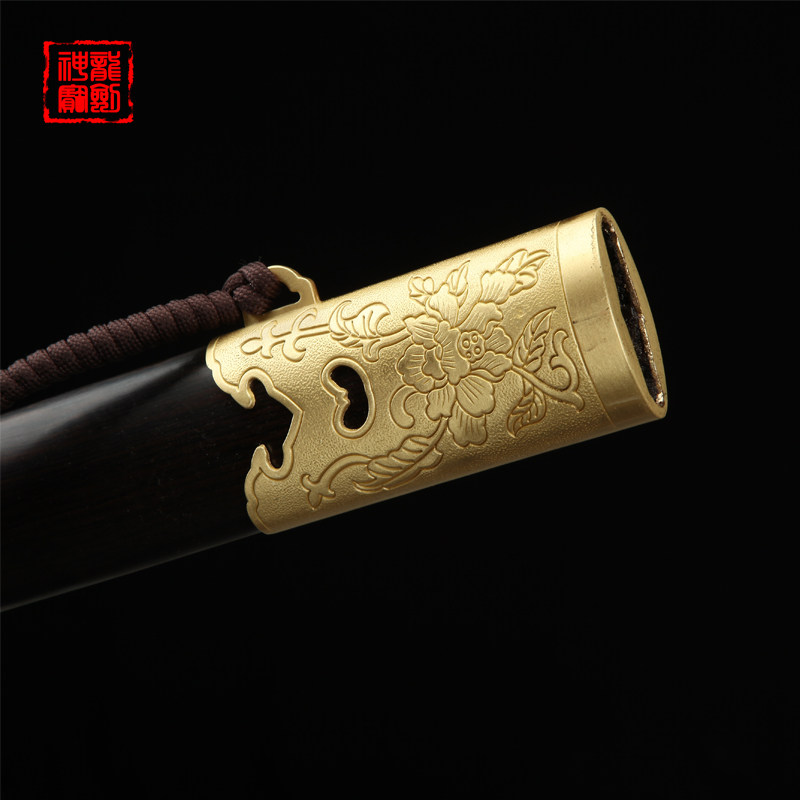 Longquan ebony wood new sour branch wood sword peony pattern steel pure copper handmade sword sword unedged