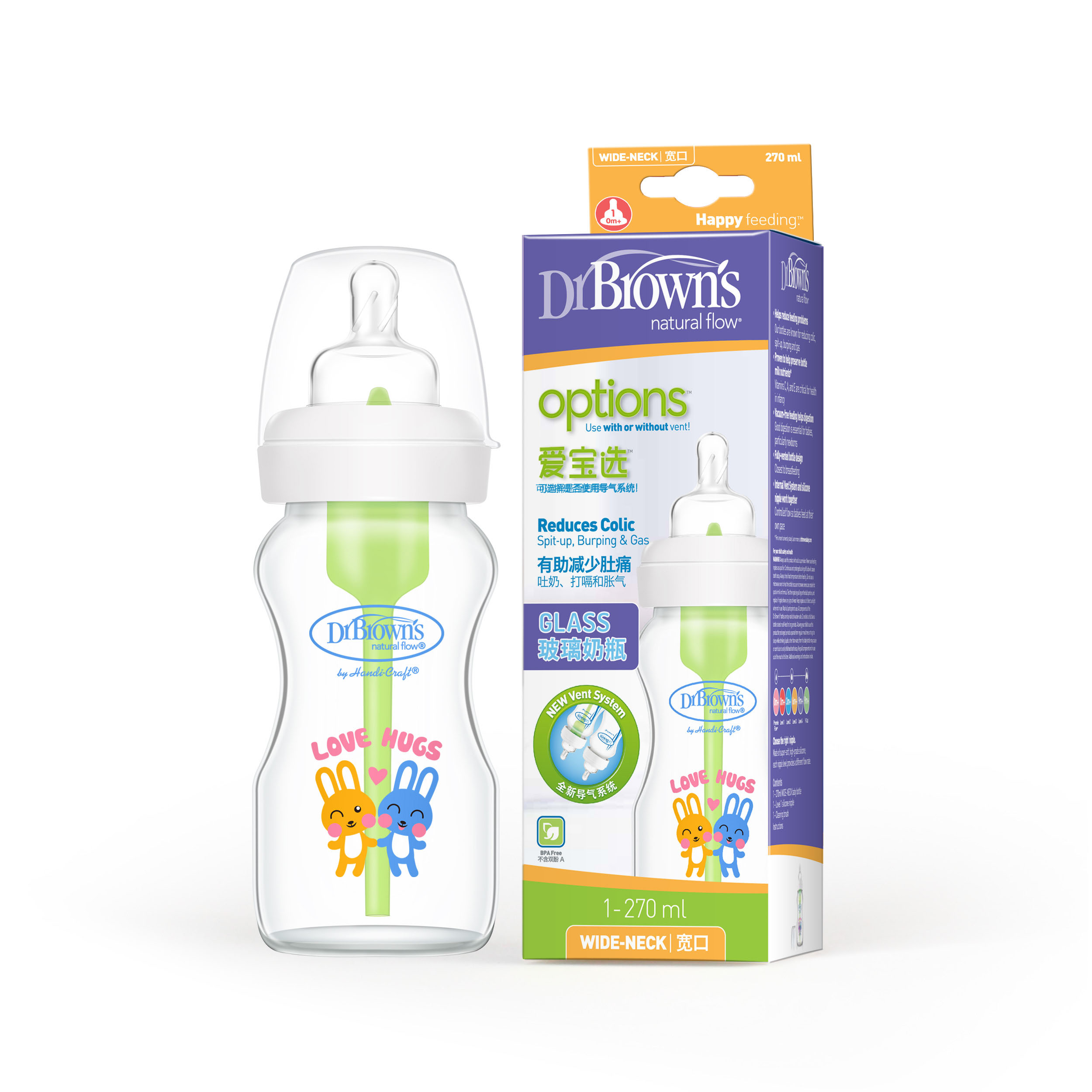 Dr Brown drbrowns glass bottle Newborn baby baby anti-choking anti-flatulence wide mouth bottle 270ml