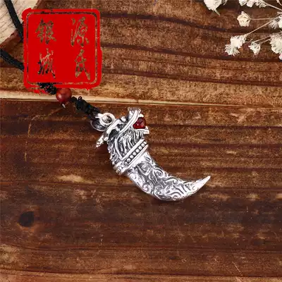 Foot silver men's necklace personality domineering wolf tooth pendant pendant fashion Korean jewelry boys accessories retro pendant