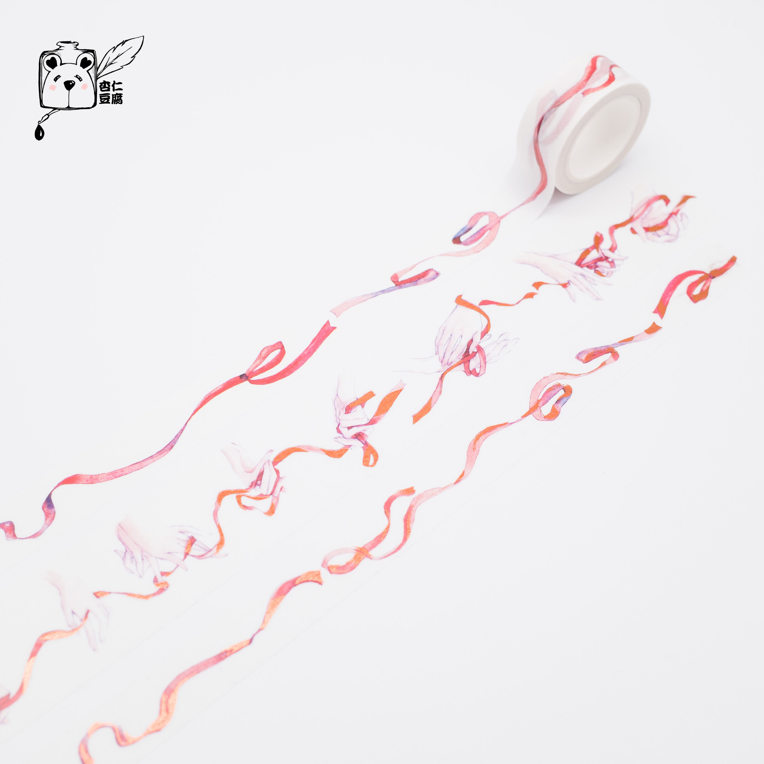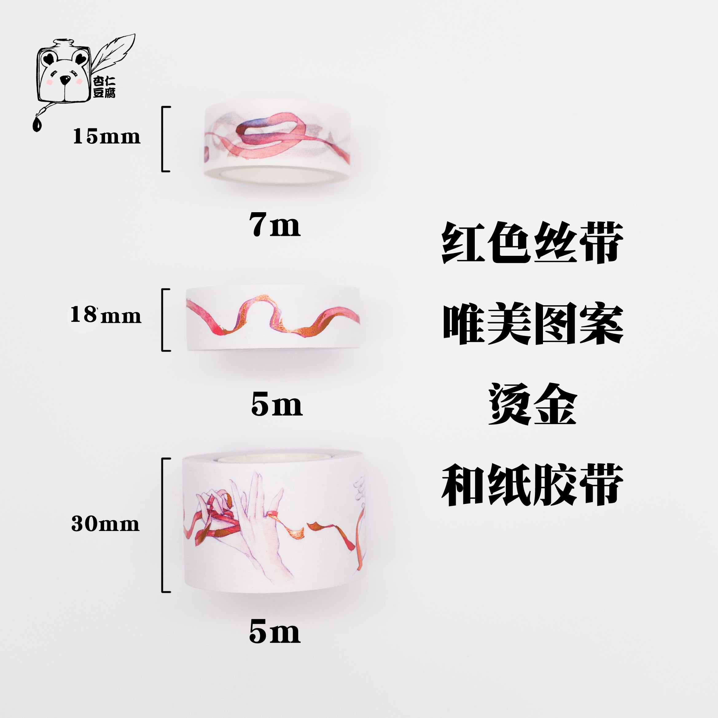 01 red ribbon with 02 red ribbon with off-type paper 03 hand-wrapped ribbon with off-type paper 04 hand-wound ribbon and paper adhesive tape without bronzing