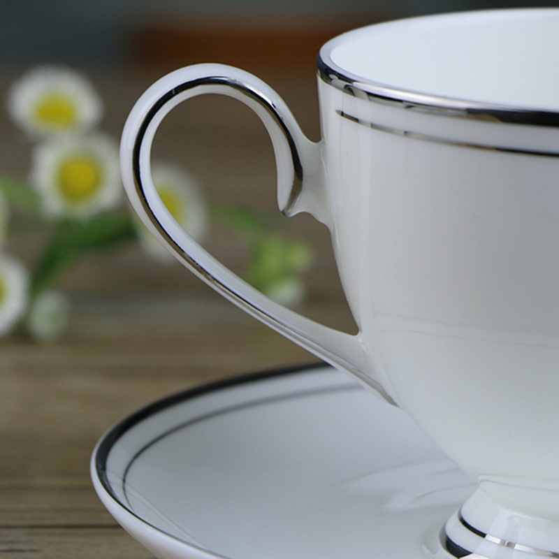 Dieter Food Generation European-style Bone China Silver Edge Coffee Cup Suit Minima Home Afternoon Tea Cup Phnom Penh Red Tea Cup Saucer