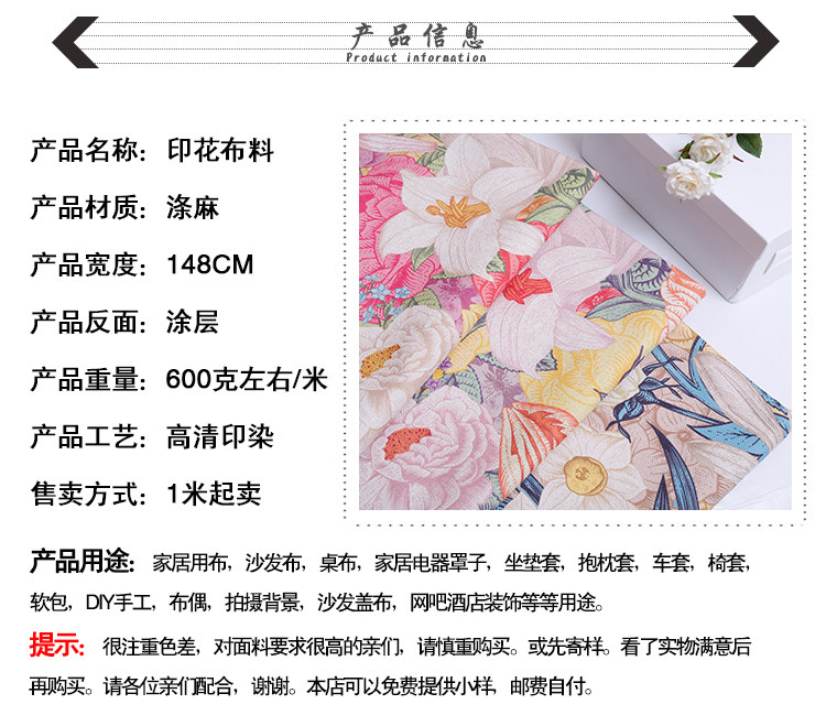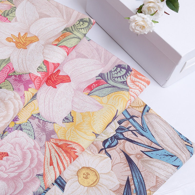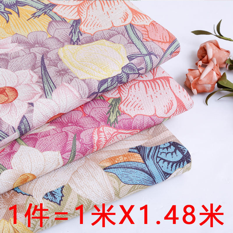 High-grade thick linen printed cotton linen wind flower fabric handmade diy fabric tablecloth soft bag chair cover sand release