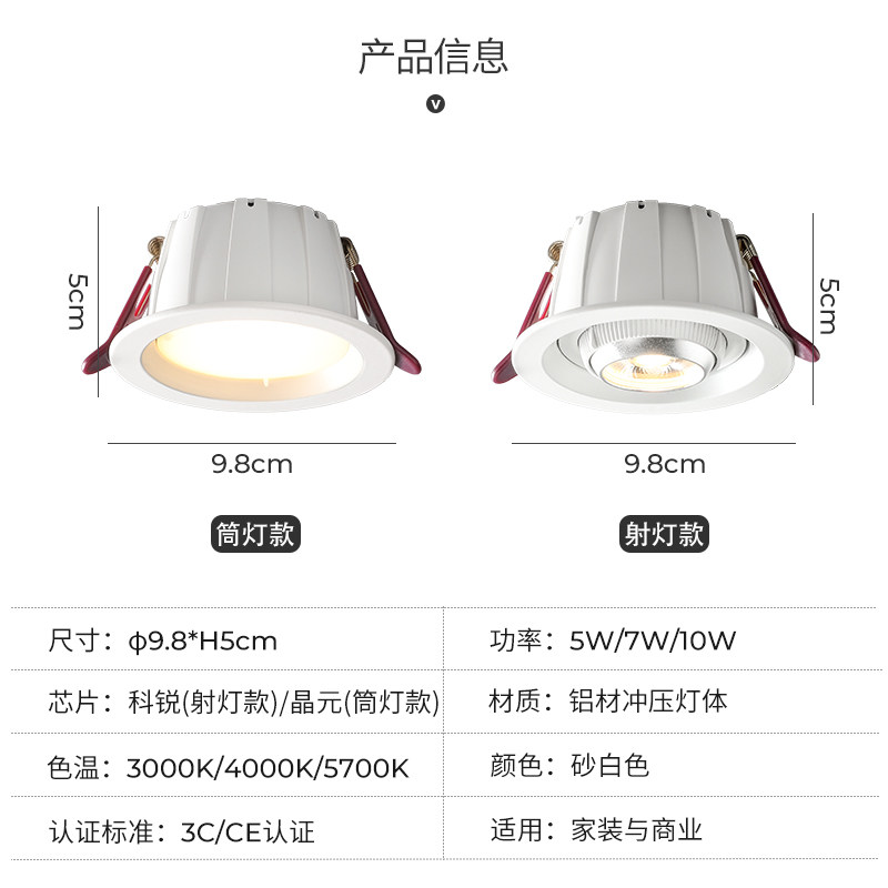 Plotty LED spot light Ceiling light cob Recessed down light Round hole light Bull's eye light Living room without main light lighting