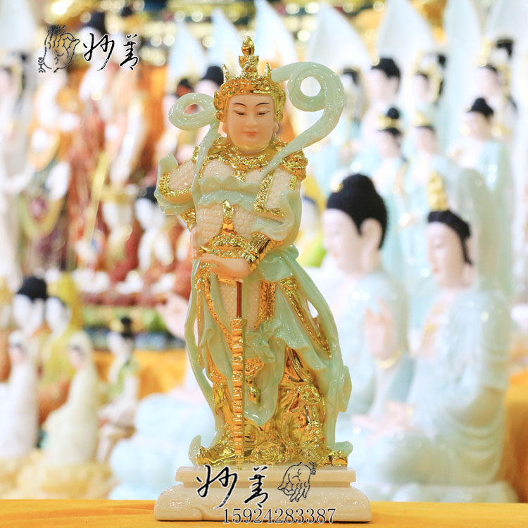 White marble Buddha Statue Wei Tuo Bodhisattva Jia Lan Bodhisattva Guan Gong Statue Guan Di Shenjun Zhaocai Town House Feng Shui Decoration