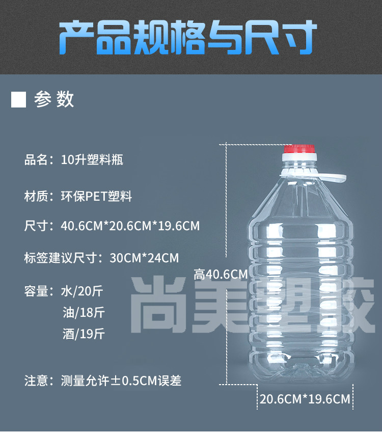 Thickened 10L transparent plastic oil barrel foot 20 catty food grade wine barrel PET peanut oil bottle wine bottle enzyme