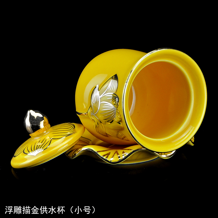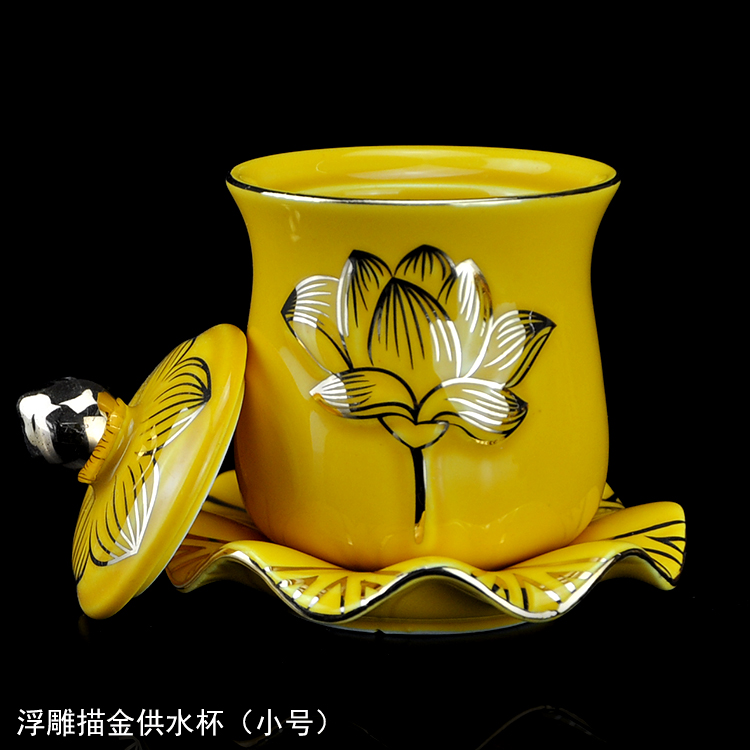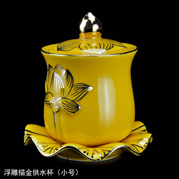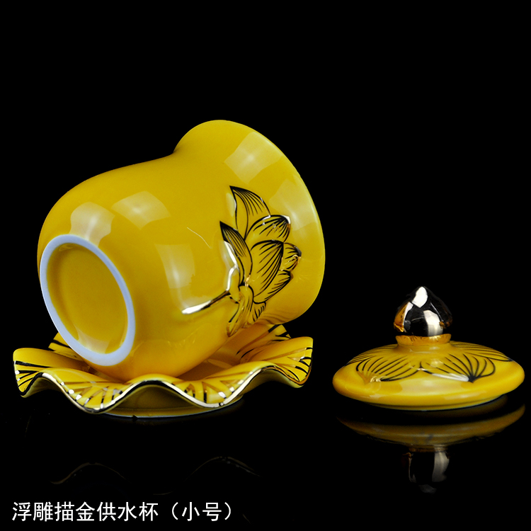 Buddhist supplies Holy water cup for Buddha with water cup Ceramic Lotus flower gold relief water cup small
