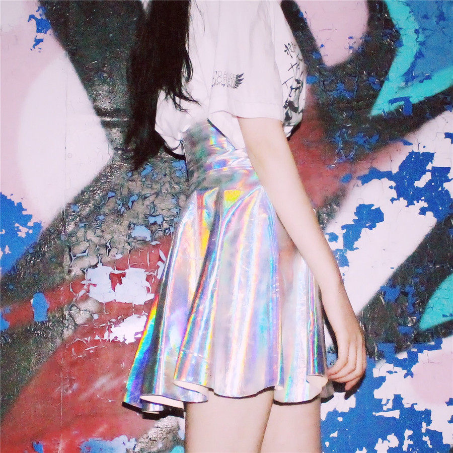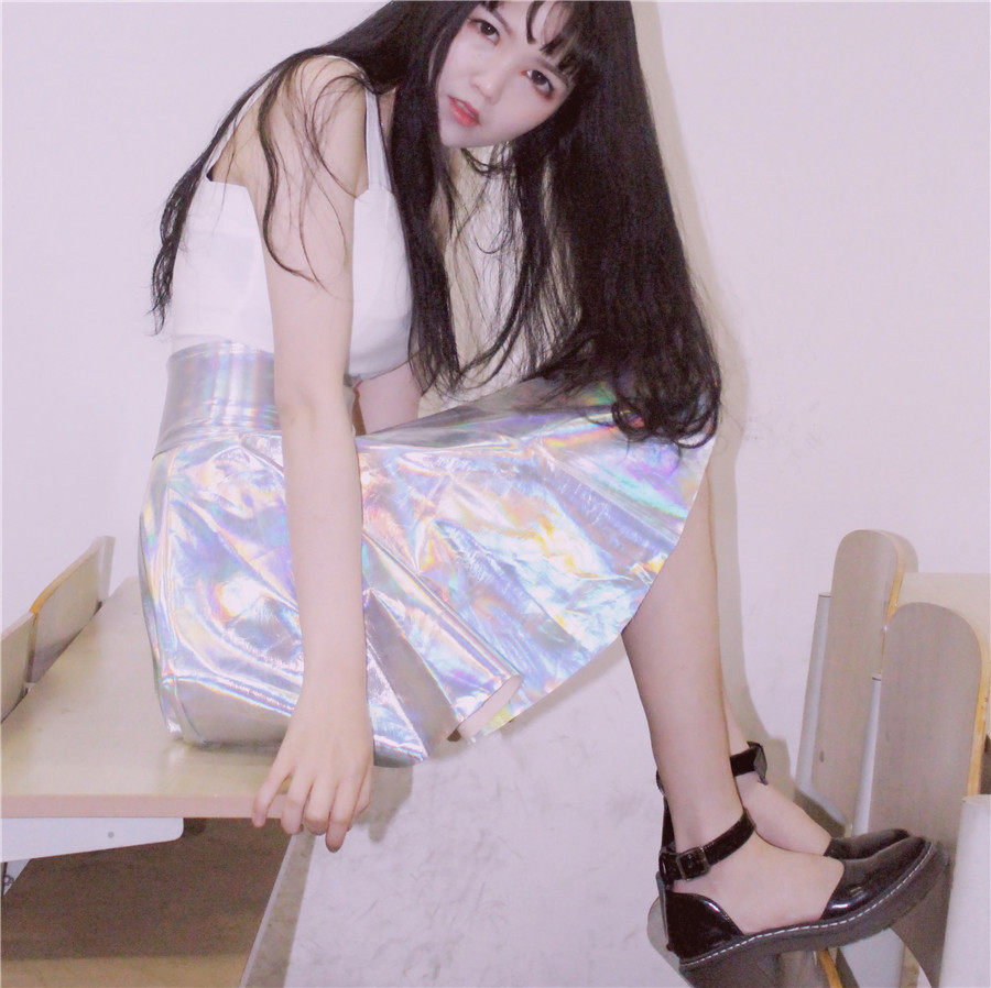 Laser high waist tutu skirt silver Symphony technology sense Symphony silver skirt costume female electronic music festival costume