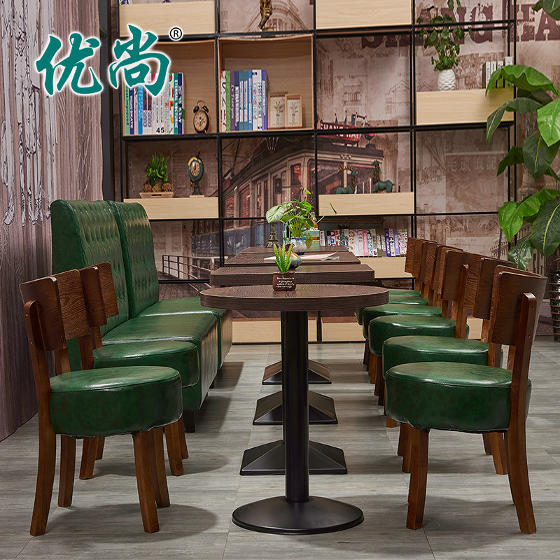 High round back chair-Walnuts Wood Frame-Coffee Color Leather 0 6M Diameter Retro Round Table 0 6 * 0 6M Retro Square Table 1 2m Cassette High Round Back Chair-Original Wood Color Wood Shelf-Coffee Color Leather