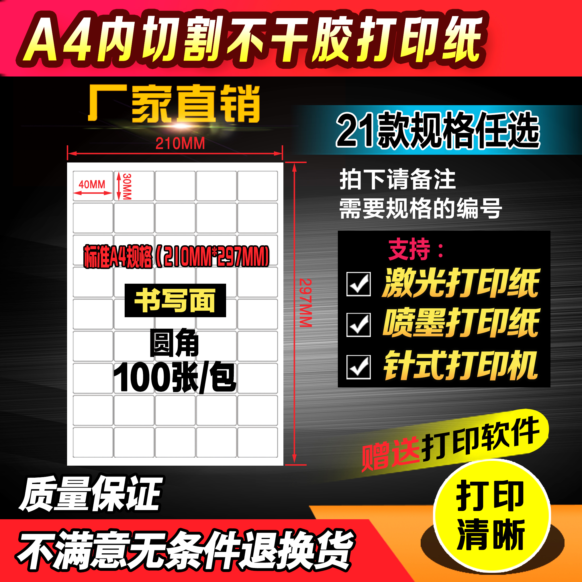 A4 Writing surface Cut inside 45 pieces 40*30MM small label 100 sheets