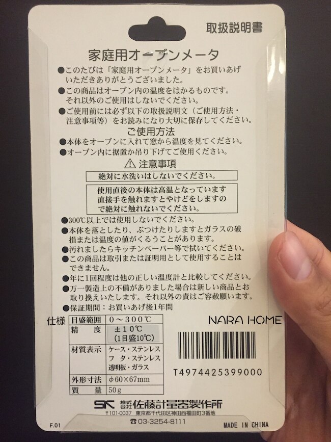 Japanese baking tool Sato SATO stainless steel sitting oven special oven thermometer