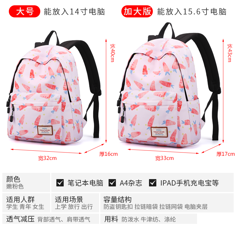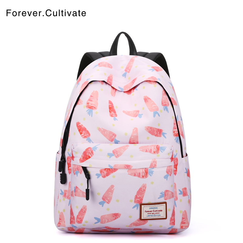 Forever cultivate backpack Korean version of the small fresh printing backpack female middle school student school bag computer bag