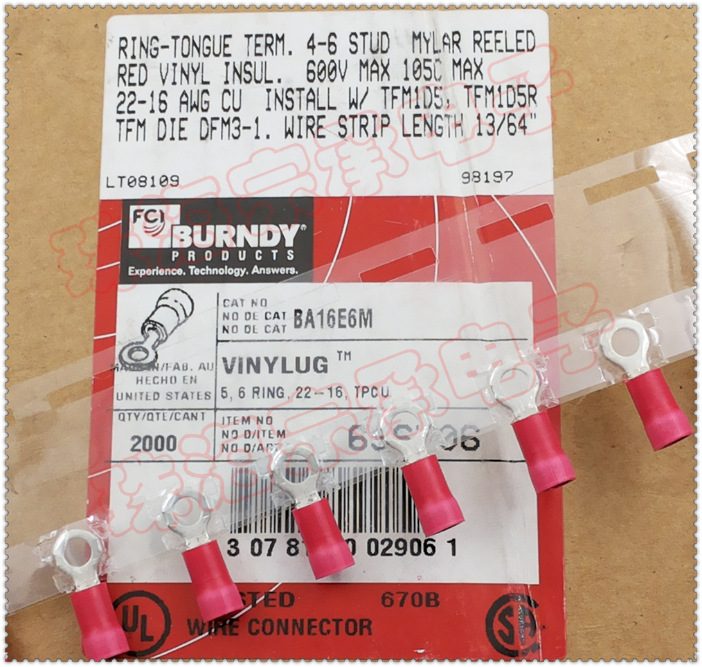 Imported from the United States BURNDY 22-16 BA16E-6M cold press 3 8mm round nose terminal