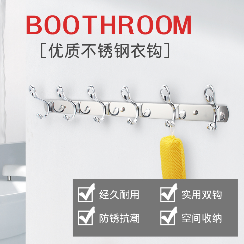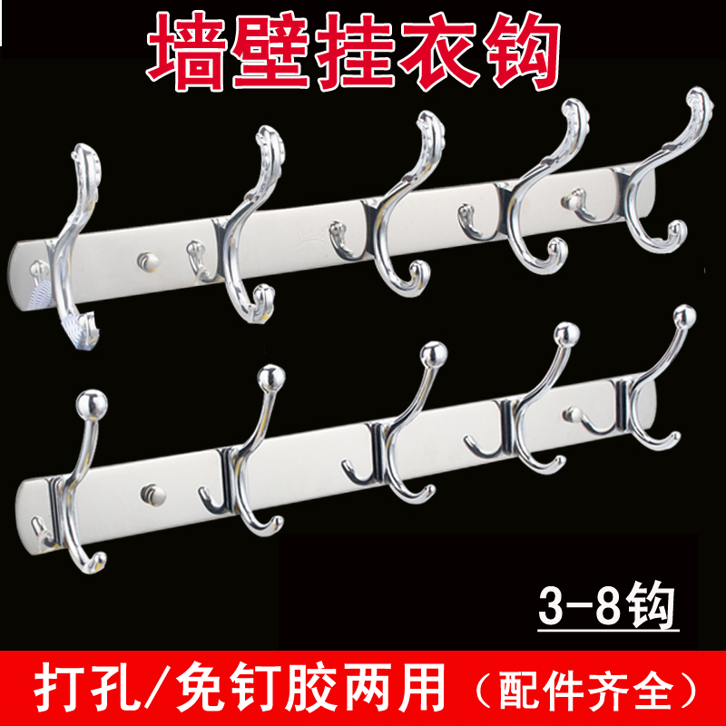 Non-perforated stainless steel hanging hook row hook Bathroom towel hook Metal coat hook Wall hanger clothes hook