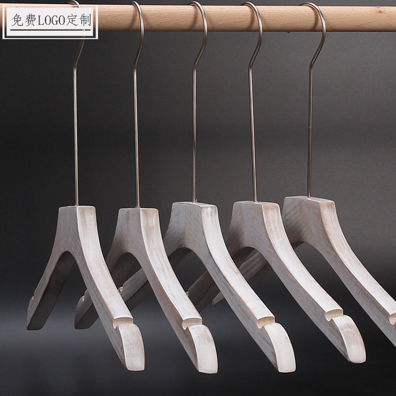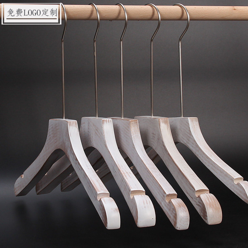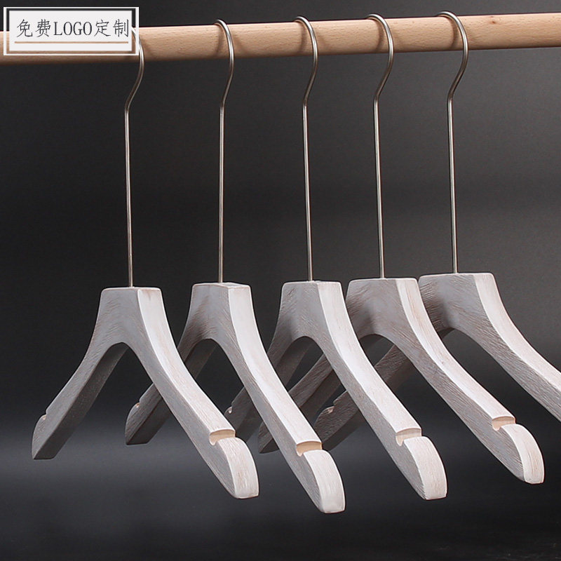 Clothing store women's wooden hangers wholesale solid wood washed old brushed white non-slip wooden hangers
