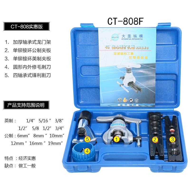 New product eccentric precision metric inch air conditioning copper pipe bell mouth expander Dasheng pipe expander double pipe clamp expander
