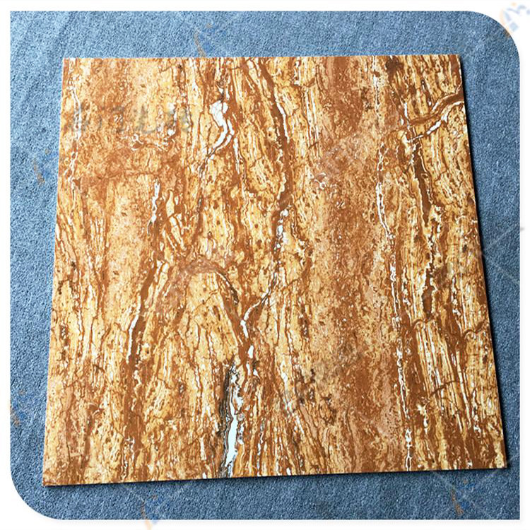 Brown-yellow flow stripe 80*80 background tile bright glazed tile porcelain simple modern floor warm color gilt