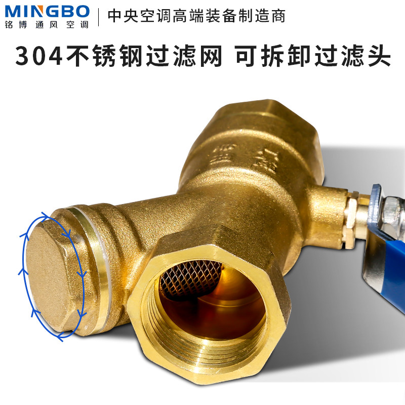 Pure copper filter switch integrated valve Y-type filter screen 6 points water pipe air conditioning switch DN20 filter integrated ball valve