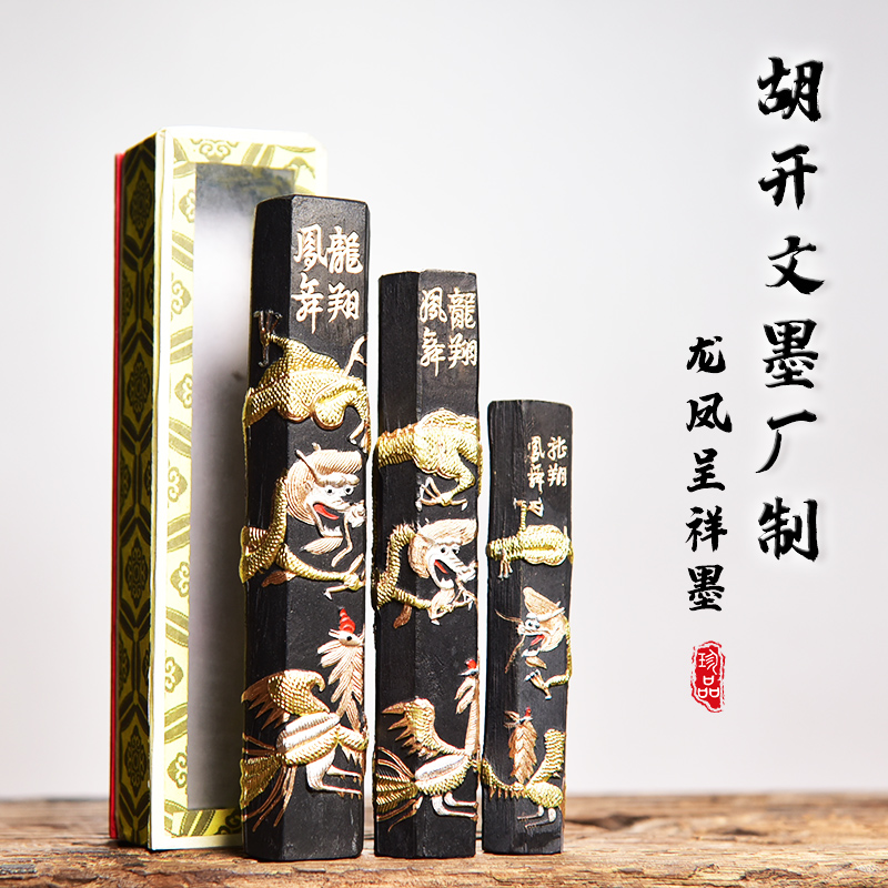 Zhengzong Anhui Province upscale High-end Treasured Gift Wenfang Four Treasures Old Hu Kaiwen Ink Factory Emblem Ink ink Ink Slab Ink ink Ink Ingots Dragon Xiang Fengdance Mega 4 Two Ventures Four Precious Ink Ink Ink ink
