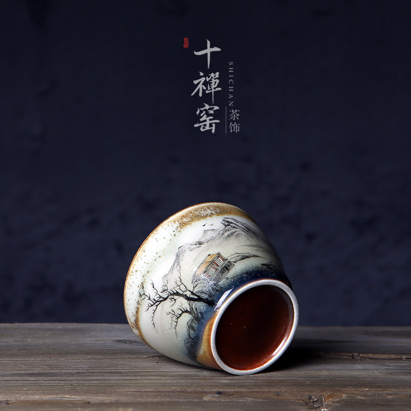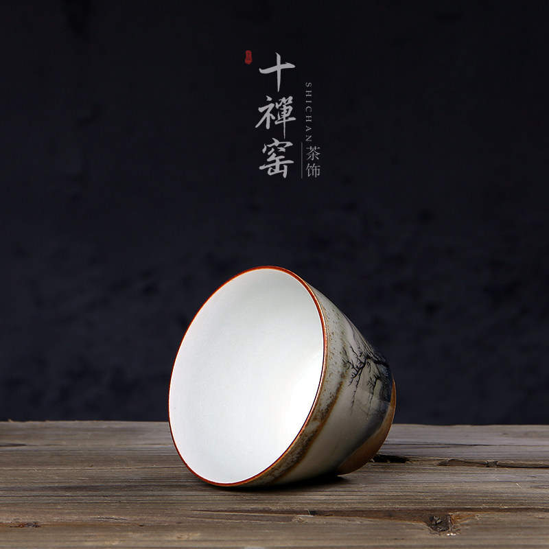 Ten Zen Kiln Jingdezhen Chaisao Master Cup pure handmade open piece kiln transformed ceramic single-cup Kung Fu tea cup tea set