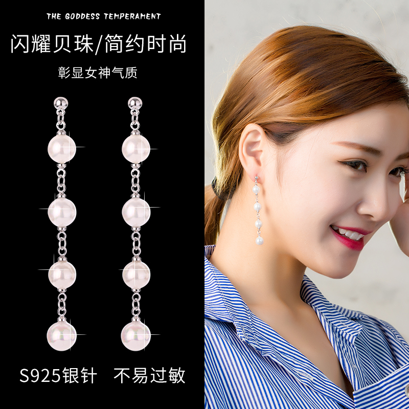Pearl earrings female long version 925 sterling silver ear needle tassel Korean temperament fashion creative hypoallergenic earrings simple