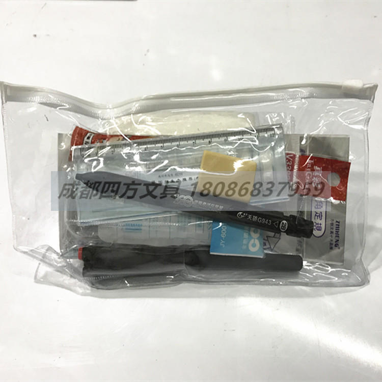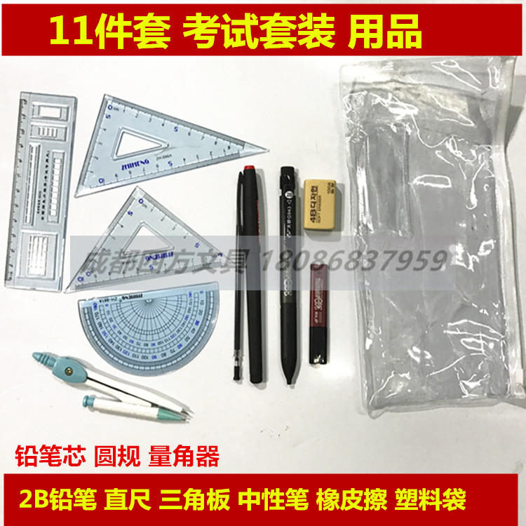 Test supplies 11 pieces set neutral pen 2B pencil round plate triangular plate gauge straight ruler eraser bag